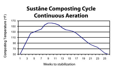 During the Suståne composting process internal windrow temperatures are routinely monitored and recorded to assure that 100% of the organic material has been subjected to thermophilic temperatures in excess of 135°F for a minimum of five consecutive days. At the end of the active composting and curing phase, the organic material is homogenous (uniform) and dark brown in appearance and has no odor including septic or ammonia gases. The parent materials are indistinguishable as the compost has an earthy, rich texture of humus.