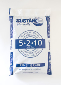 Sustane 5-2-10+Fe is the all-purpose turf food when the 1:2 N to K ratio is desired for building carbohydrate reserves in the root system. It is available in either Medium Grade (lawn and fairway applications) or Fine Grade for putting greens. Suitable for use on all turfgrass types providing quick green up followed by long-lasting slow-release organic nitrogen. Use where even growth and color are needed for six to eight weeks and potassium reserves need to be increased.