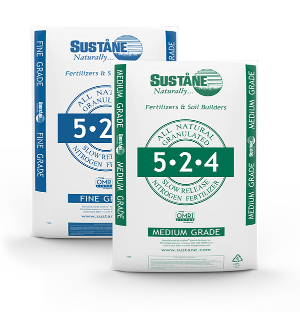 Suståne 5-2-4 All Natural Slow Release Nitrogen Fertilizer provides 6 - 12 weeks of nitrogen in the organic slow-release form and complies with the National Organic Program standards. Suståne replenishes the soil with a rich supply of humus (stabilized organic matter) and all of the essential naturally chelated nutrients required for sound and long term soil building programs. Suståne 5-2-4 All Natural is derived from biologically stable organic compost plus natural sulfate of potash and feather meal.